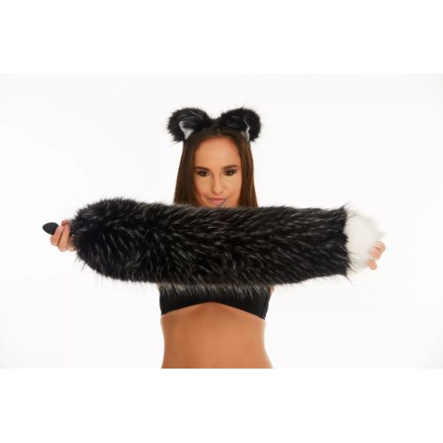 Анальний хутряний пухнастий хвіст Чорнобурий з білим кінчиком OKOVA 600 мм