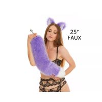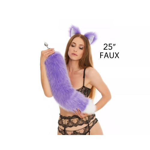 Анальний пухнастий хутряний хвіст без пробки Фіолетовий з білим кінчиком OKOVA 600 мм