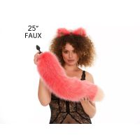 Анальний хутряний пухнастий хвіст без пробки Яскраво-рожевий з персиковим кінчиком OKOVA 600 мм