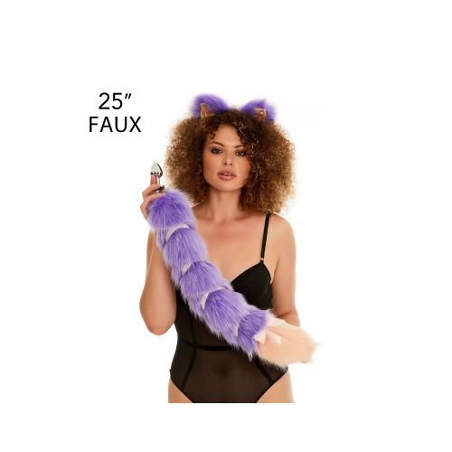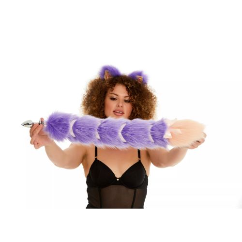 Анальний хвіст зі стрічкою без пробки Фіолетовий з персиковим кінчиком OKOVA 600 мм