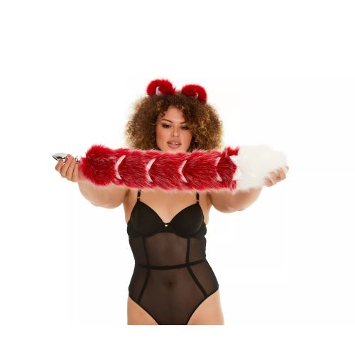 Анальний хвіст зі стрічкою без пробки Темно-червоний з білим кінчиком OKOVA 600 мм