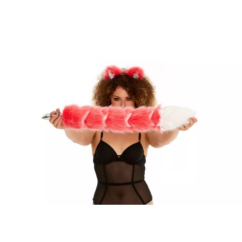 Анальний хвіст із стрічкою без пробки Яскраво-рожевий із білим кінчиком OKOVA 600 мм