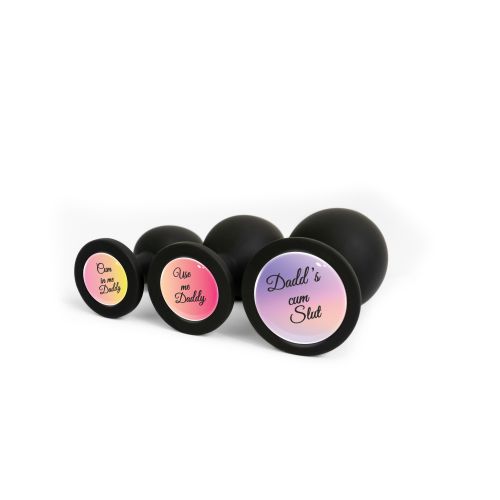Анальна пробка металева срібляста з написом Use Me Daddy OKOVA розмір S
