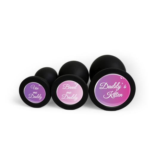 Анальна пробка силіконова чорна з написом Breed me Daddy OKOVA розмір L