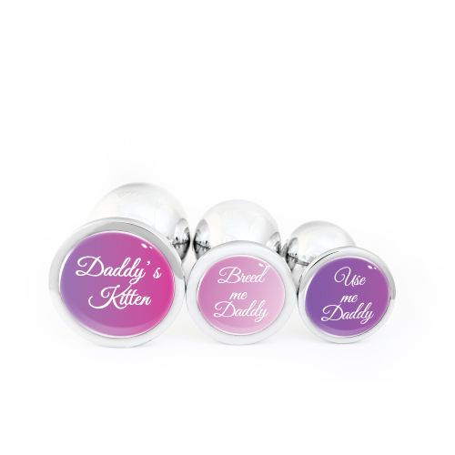 Анальна пробка металева срібляста з написом Use Me Daddy OKOVA розмір S