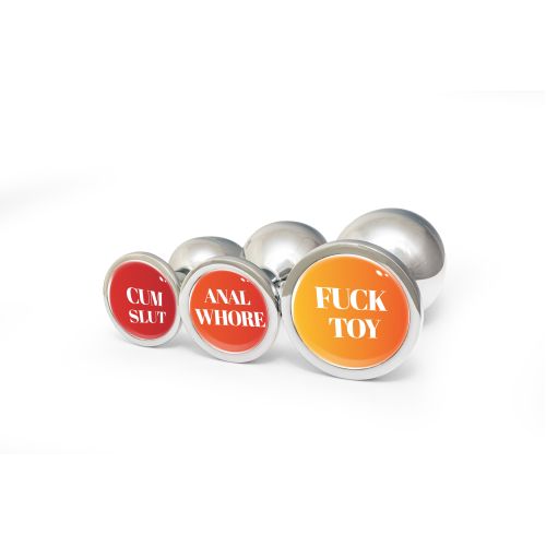 Анальний чепець металевий сріблястий з написом Anal Whore OKOVA розмір L