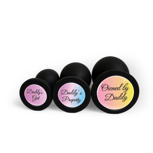Анальна пробка силіконова чорна з написом Owned by Daddy OKOVA розмір M