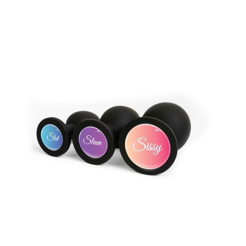 Анальна пробка з силікону чорного кольору з написом Slut OKOVA розмір L
