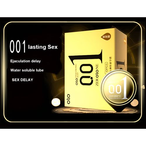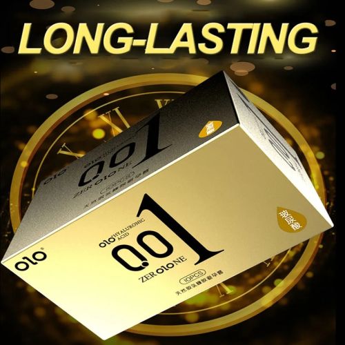 Ультратонкі текстуровані презервативи з гіалуроновою кислотою та пролонгуючим ефектом OLO ZERO ONE Gold 10 штук