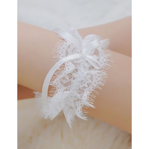 Білі мереживні підтяжки для панчіх з бантиками Star Night