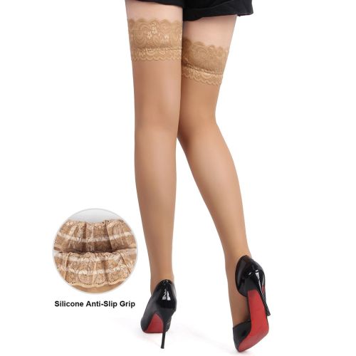 Краї панчіх прикрашені ніжним мереживом, що додає витонченості, а подвійний силіконовий дизайн на внутрішній стороні відкриття панчохи запобігає їх сповзанню, забезпечуючи надійну посадку протягом усього дня. Панчохи – відмінний вибір для тих, хто цінує поєднання елегантності та практичності, створюючи ефектний та привабливий образ.
