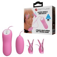 Віброяйце із затискачами для електростимуляції сосків Pretty Love рожевий