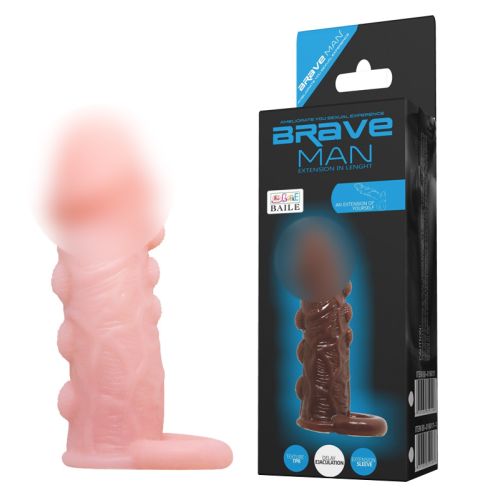 Еластична насадка презерватив на пеніс з бугорчатками та кільцем під мошонку тілесного кольору Brave Men