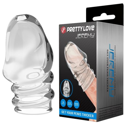 Насадка на член ребриста гелева прозорого кольору Lybaile Pretty Love Jeremy Skin
