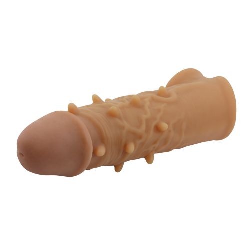 Насадка на члена реалістична з петлею для мошонки і шипами силіконова тілесного кольору Lybaile Pretty Love Osborn