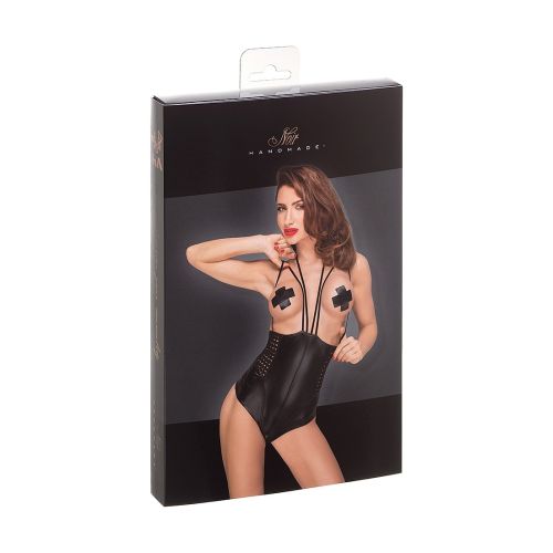 Боді еротичне Noir Handmade F179 з вінілу, на бретельках, чорне, L