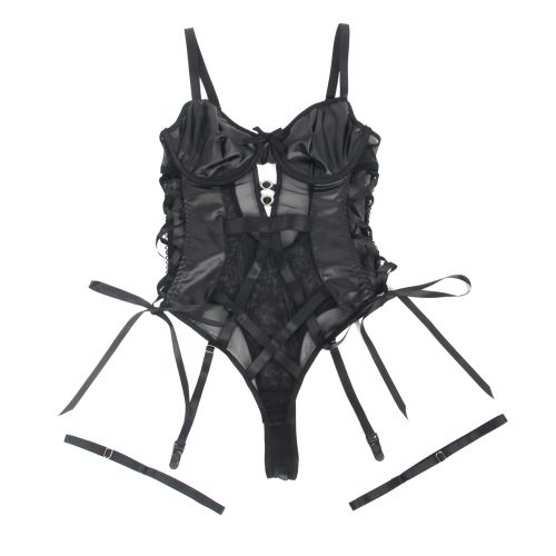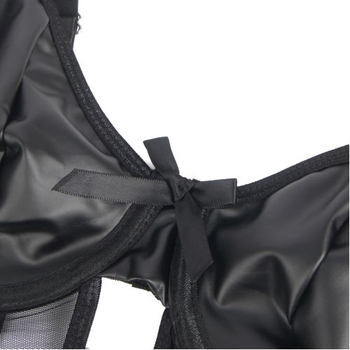 Боді зі штучної шкіри Star Night, з гартером, чорне, L