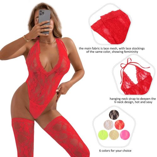 Боді з панчохами Star Night мереживне, напівпрозоре, червоний, ХL