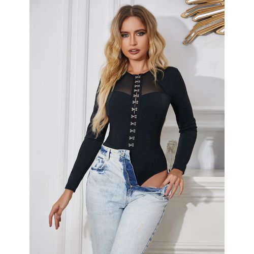 Боді з довгими рукавами та пряжками на гачках чорного кольору Star Night розміри XS-M