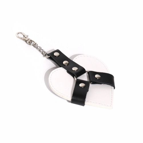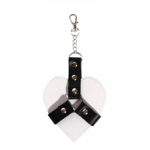 Цей брелок може стати цікавим доповненням вашого образу та яскравим аксесуаром для любителів оригінального дизайну. Виконаний у формі серця, він прикрашений мініатюрними портупеями, які надають виробу зухвалого вигляду.