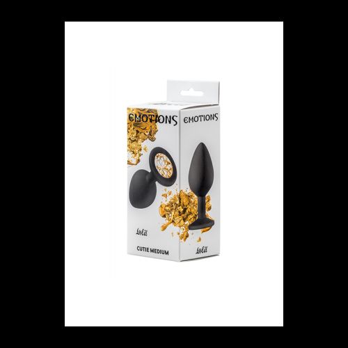 Анальний затор чорного кольору з жовтим каменем Boss series Emotions Cutie розмір Medium