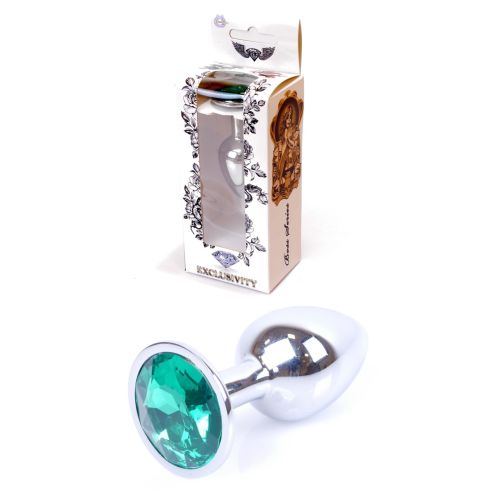 Анальна пробка S сріблястого кольору з кристалом зеленого кольору BOSS of TOYS Jewellery plug