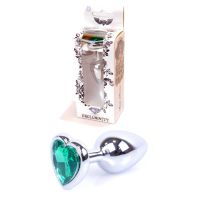 Анальна пробка S сріблястого кольору з кристалом у формі серця зеленого кольору BOSS of TOYS Jewellery plug
