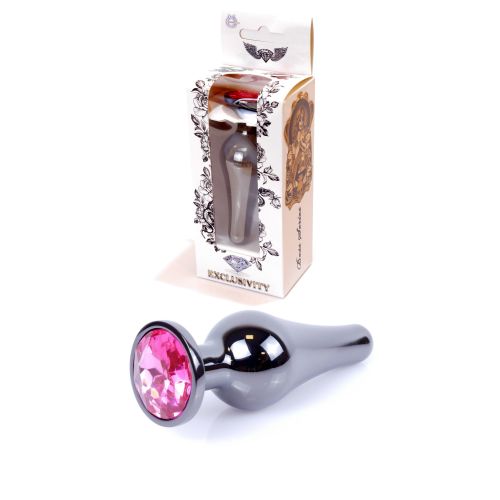 Анальна пробка з нержавіючої сталі з малиновим камінцем Boss series Plug Jewellery Dark Silver Butt Plug Pink