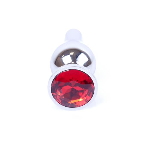 Анальна пробка з нержавіючої сталі сріблястого кольору з червоним камінцем Boss series Plug Jewellery