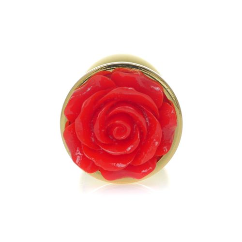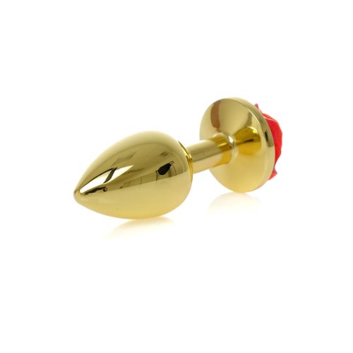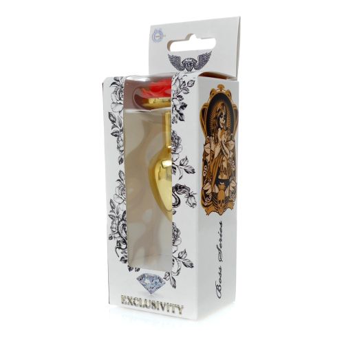 Анальна пробка з нержавіючої сталі золотистого кольору з червоною трояндою Boss series Boss of toys