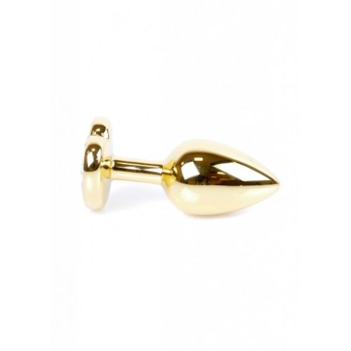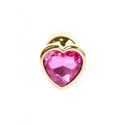 Анальна пробка золотистого кольору з рожевим каменем у формі серця Boss series Jewellery