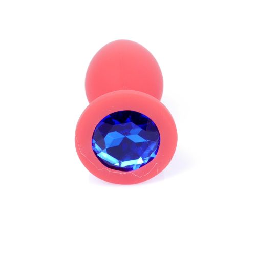 Анальна пробка силіконова червоного кольору з синім камінчиком Boss series Jewellery
