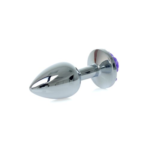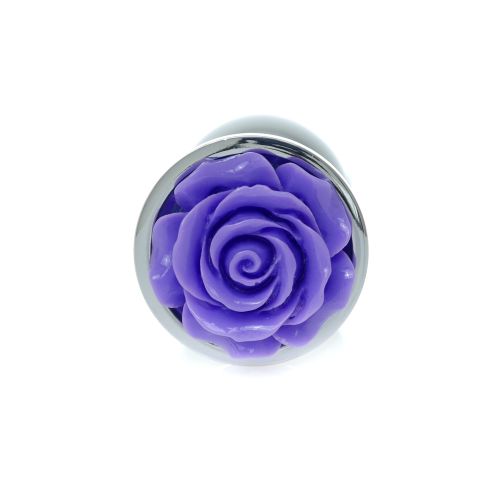 Анальна пробка сріблястого кольору з фіолетовою трояндочкою Boss series Jewellery