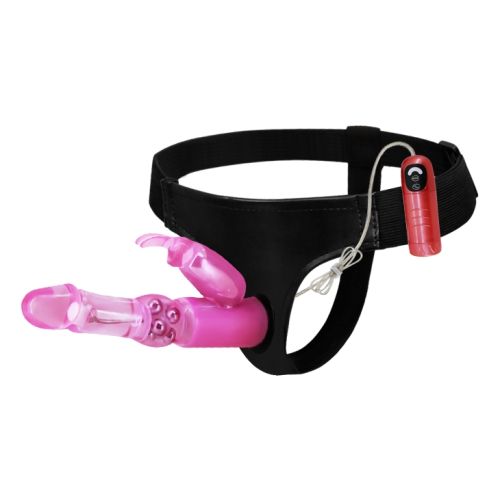 Страпон жіночий зі стимуляцією клітора рожевий ULTRA Harness STRAP-ON - Вібрація Обертання