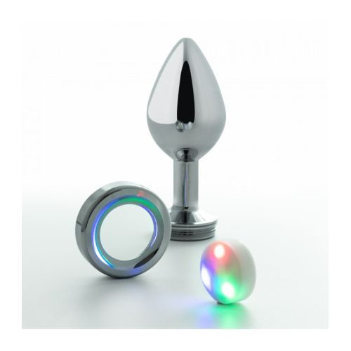 Анальний металевий затор сріблястого кольору з різнобарвним діодом Crushious