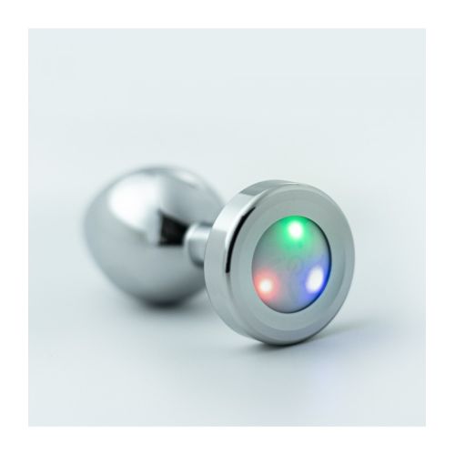 Анальна металева пробка сріблястого кольору з різнокольоровим діодом Crushious
