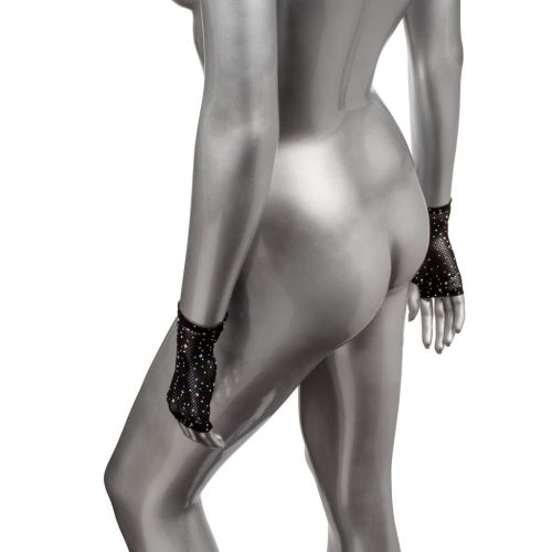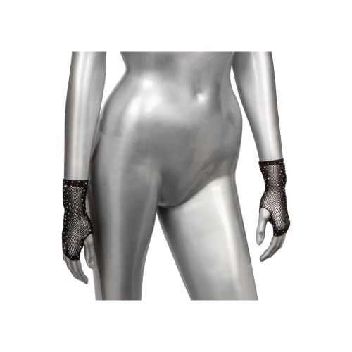 Рукавички короткі у дрібну сітку зі стразами чорного кольору California Exotic Novelties