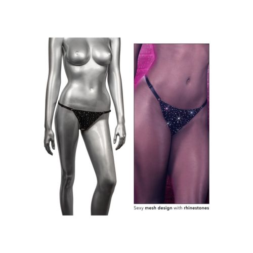 Стрінги зі стразами та відкритим доступом чорного кольору California Exotic Novelties