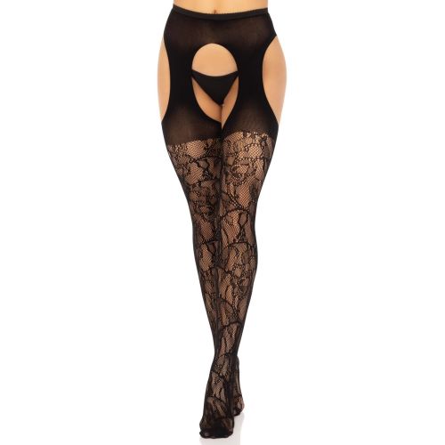 Панчохи з люверсами та мереживом чорного кольору Leg Avenue розмір One Size
