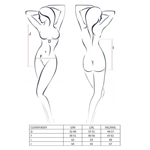 Сексуальне боді Passion Erotic Line CLOVER BODY з елементами під латекс — ефективна зброя спокушання, що потрапляє в ціль. Вабливий чорне боді у дрібну сітку вишукано підкреслює розкішні вигини талії і стегон, акцентуючи увагу на стрункості улюблених чоловіками ніжок. У такому неймовірному вбранні ви спокусите навіть самого чоловіка, оскільки жоден партнер не зможе чинити опір такому натиску відвертого бажання і яскравих еротичних фантазій.