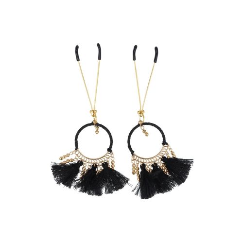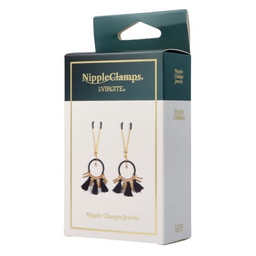 Декоративні золоті затискачі для сосків з чорними китицями Virgite Nipple Clamps