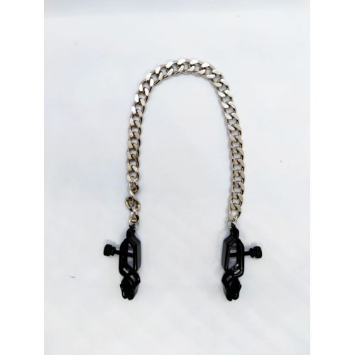 Затискачі на соски чорного кольору на сріблястому ланцюжку DS Fetish Nipple clamps iron розмір L