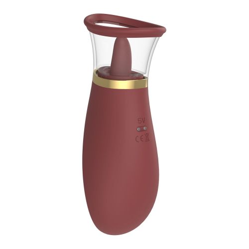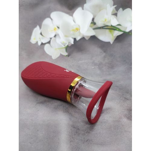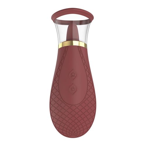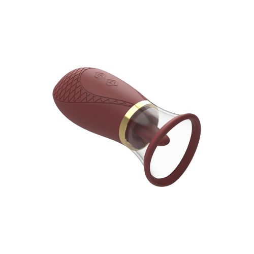 Вакуумний стимулятор для клітора та сосків з рухомим язичком та функцією всмоктування бордового кольору Dream Toys Romance Roxy