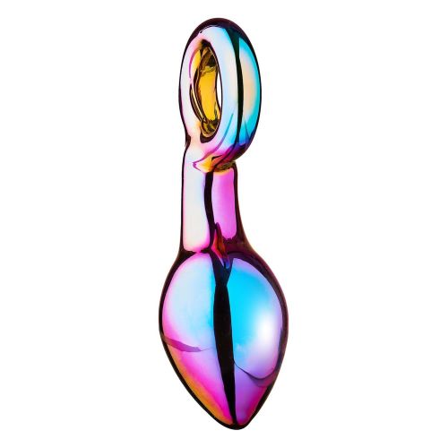 Анальний пробка з кільцем із боросилікатного скла різнокольорова Dream Toys Glamour glass chunky ring plug