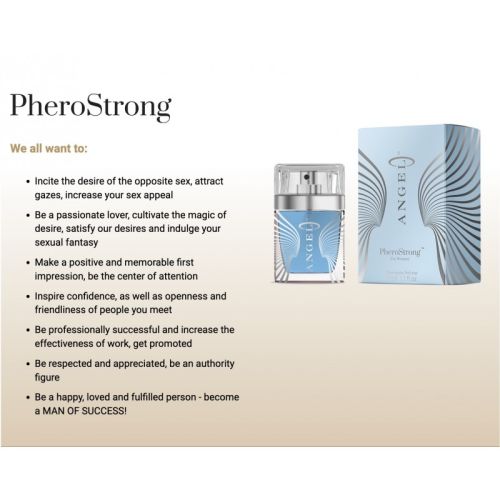PheroStrong pheromone Angel for Women - це аромат, повний бажання та емоцій, злегка розбавлений щіпкою дотепності та грайливості. Аромат передає неймовірну двоїстість жіночої натури. Феромон Ангел для жінок PheroStrong призначений для всіх жінок, які мають сміливість показати світові як світлі, так і темні сторони. Жінкам, які люблять виклики і не бояться пригод, чия мужність та ангельський спокій надихають усіх навколо. Аромат розкривається нотами бобів тонка та какао. Ангел з феромонами PheroStrong для жінок ідеально підкреслить вашу вроджену жіночність та витончений стиль. В оригінальній композиції вміло поєднуються традиційні та інноваційні інгредієнти. Феромон Ангел для жінок PheroStrong розкривається тонкими ароматами кави та мигдалю, які гармонійно поєднуються з нотами тонких бобів, какао, туберози, жасмину, знаменитої болгарської троянди та інших кольорів. Ви також відчуєте чуттєвий мускус, пачули і кедр, що зігріває. Сильна східна композиція, завдяки якій ніхто не зможе встояти перед вами. - говорить про аромат PheroStrong Angel for Women із феромонами одна з його вірних покупців, Сюзанна. Це сексуально, п'янко і звабливо. Просто ідеально. Верхня нота: лимон, бергамот, мигдаль, кава. Переклад: ірис, жасмин, апельсиновий колір, болгарська троянда, тубероза. Базова нота: кориця, пачулі, кедр, амбра, сандалове дерево, боби тонка, ваніль, мускус, какао з кашемірового дерева, праліне. Феромон у перекладі з грецької означає передавач збудження. Феромони є леткі хімічні сполуки, здатні діяти поза організмом. Ймовірно, вони є у всіх організмах: у тварин, рослин, грибів, бактерій, а також у людини. Однак феромони працюють лише між особами одного виду. Завдяки їм ми надсилаємо стимули, що позитивно впливають на спілкування з навколишнім середовищем і підвищують нашу привабливість в очах протилежної статі. На думку дослідників Віденського інституту міської етології, запахи людського тіла містять інформацію, що визначає емоційний стан людини. Коли наші нюхові рецептори вловлюють «запах» феромонів, людський розум розпізнає їх як специфічний запах, який буде викликати підсвідомі реакції у інших людей у будь-якій ситуації. роботі, на вечірці з друзями чи в гостях. офіційна зустріч. Отже, весь процес дуже ефективний, тому що він відбувається нижче свідомого рівня — нижче нашого усвідомлення — на рівні інстинктів. Реципієнт змінює свою поведінку завдяки впливу речовини, абсолютно не відчуваючи запаху феромону і не знаючи про його дію. Вважається, що якби ми не користувалися косметикою (мило, шампуні, лосьйони і т. д.), наші феромони були б більш інтенсивними. на нашу особу. Феромони відносяться до групи стероїдів, які знаходяться в організмі людини у вигляді гормонів кори надниркових залоз і жіночих статевих гормонів – естрогенів та чоловічих статевих гормонів – андрогенів. Чоловічі феромони: Андростенол (5