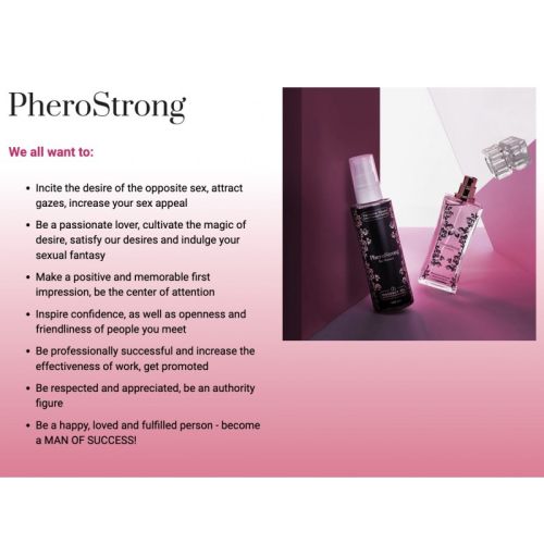 Розпалюйте бажання протилежної статі, привертайте погляди, підвищуйте свою сексуальну привабливість. Будь пристрасним коханцем, культивуй магію бажання, задовольняй наші бажання та віддайся своїй сексуальній фантазії. Виконайте позитивне і незабутнє перше враження, будьте в центрі уваги. Вселяйте довіру, а також відкритість і дружелюбність людей, яких ви зустрічаєте. Будь професійно успішним і підвищуй ефективність роботи, отримуй підвищення. Користуйтесь повагою та вдячністю, будьте авторитетною фігурою. Будь щасливою, коханою і людиною, що відбулася - стань ЧОЛОВІКОМ УСПІХУ! Верхня нота: дзвіночок, лимон, яблуко. Переклад: троянда, жасмин, бамбук. Базова нота: мускус, амбра, кедр. Одним із основних інгредієнтів парфуму є сицилійський лимон. З першим ароматом, який ви відчуєте після розпорошення парфумів, ви дійсно відчуєте себе на сицилійських пляжах, повних свіжого бризу та розпеченого піску. Його приємний та ненав'язливий аромат зберігається протягом кількох годин. PheroStrong pheromone for Women – свіжий фруктово-квітковий аромат. Аромат підходить всім жінкам, які не бояться випробувань і хочуть почуватися розкуто. Ця формула поглине вас своєю енергією та унікальністю. Завжди елегантний і доглянутий любитель розкішних автомобілів, відомий ютубер та інфлюєнсер. Один із власників FAME MMA. Він став популярним завдяки програмі "Варшавський берег". Хімія кохання, випущена з ароматом PheroStrong, починає чуттєву подорож у глибини нашої підсвідомості. Співають я в тебе закоханий, весь світ паморочиться. Я закоханий у тебе. Що ти зробив, що я більше не можу бути одна? Феромон у перекладі з грецької означає передавач збудження. Феромони є леткі хімічні сполуки, здатні діяти поза організмом. Ймовірно, вони є у всіх організмах: у тварин, рослин, грибів, бактерій, а також у людини. Однак феромони працюють лише між особами одного виду. Завдяки їм ми надсилаємо стимули, що позитивно впливають на спілкування з навколишнім середовищем і підвищують нашу привабливість в очах протилежної статі. На думку дослідників Віденського інституту міської етології, запахи людського тіла містять інформацію, що визначає емоційний стан людини. Коли наші нюхові рецептори вловлюють «запах» феромонів, людський розум розпізнає їх як специфічний запах, який буде викликати підсвідомі реакції у інших людей у будь-якій ситуації. роботі, на вечірці з друзями чи в гостях. офіційна зустріч. Отже, весь процес дуже ефективний, тому що він відбувається нижче свідомого рівня — нижче нашого усвідомлення — на рівні інстинктів. Реципієнт змінює свою поведінку завдяки впливу речовини, абсолютно не відчуваючи запаху феромону і не знаючи про його дію. Вважається, що якби ми не користувалися косметикою (мило, шампуні, лосьйони і т. д.), наші феромони були б більш інтенсивними. на нашу особу. Феромони відносяться до групи стероїдів, які знаходяться в організмі людини у вигляді гормонів кори надниркових залоз і жіночих статевих гормонів – естрогенів та чоловічих статевих гормонів – андрогенів. Чоловічі феромони: Андростенол (5