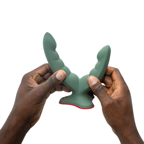 Двосторонній фалоімітатор з гнучкими стовбурами на присосці зеленого кольору Fun Factory RYDE