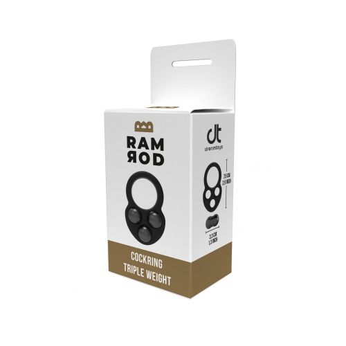 Ерекційне кільце на член з трьома обтяжувачами чорне Dreamtoys RAMROD