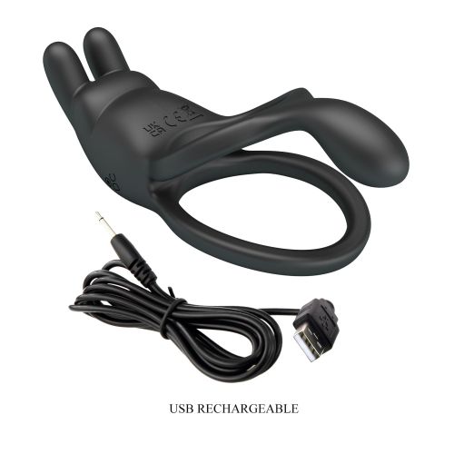 Ерекційне віброкільце подвійне на член чорне Lybaile PRETTY LOVE 7 режимів