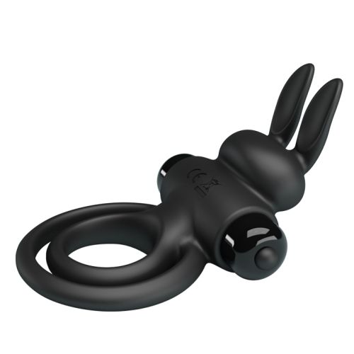 Ерекційне віброкільце на член із кроликом подвійне чорне Lybaile Pretty Love Bunny III